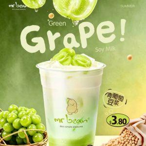 Check out the newest addition to the Mr Bean Menu! Cool down this summer with the fruity and creamy Green Grape Soy Milk for just $3.80.