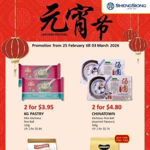 Celebrate Lantern Festival with the Sheng Siong tang yuan promotion! Enjoy discounted glutinous rice balls, ginger tea, and a Buy 1 Free 1 soy milk deal.