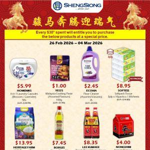Stock up for the festive season with Sheng Siong's CNY PWP Promotion from 26 Feb to 4 Mar 2026. Spend $30 to unlock massive savings on curated grocery essentials!
