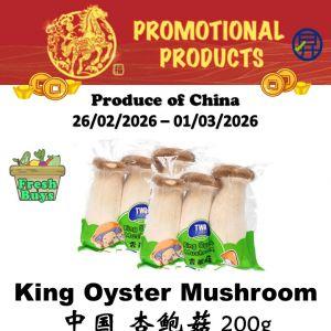 Score huge savings at Sheng Siong! Get 2 packets of King Oyster Mushrooms for $1.68 and Seedless Green Limes at 35¢/100g. Valid from 26 Feb to 01 Mar 2026.