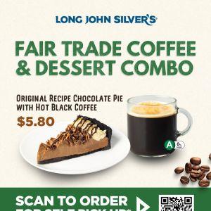 Coffee break sorted! Enjoy a Long John Silver’s Original Recipe Chocolate Pie & Fair Trade Hot Black Coffee for $5.80. Pre-order for self pick up at 5 SG outlets.