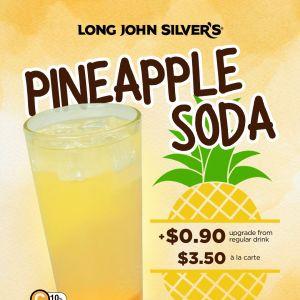 Refresh your meal with the new Pineapple Soda on the Long John Silver's menu! Upgrade your regular drink for just $0.90 or get it à la carte at $3.50.