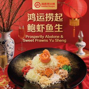 Toss to prosperity with Haidilao's new Abalone & Sweet Prawns Yu Sheng! Dine-in at S$38.80++ or order delivery at S$48.80+. Start your CNY celebrations now.