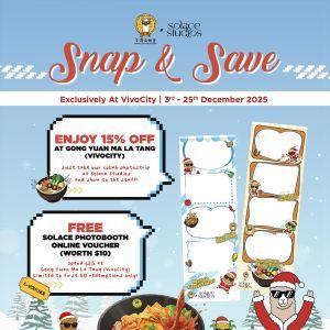 Enjoy Christmas Snap & Save deals at Gong Yuan Ma La Tang VivoCity. Get 15% off and free photobooth voucher with $25 spend. Valid 3–25 Dec 2025.