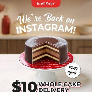 Celebrate Secret Recipe's new Instagram with an exclusive Secret Recipe Promotion! Enjoy $10 whole cake delivery in Singapore when you order online from 14-19 April 2026.