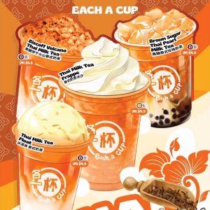 Celebrate Songkran with the creamy and fragrant Each A Cup Thai Milk Tea series! Check out the new menu featuring Biscoff Volcano and Frappes from just $4.90.